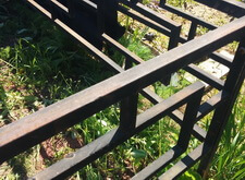 Чтобы в дальнейшем не испачкать ограду и сохранить первоначальный вид хорошо покрашенной ограды, мы заматываем ее стретч-плёнкой.