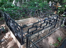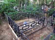 Клиент заказал у нас комплексное оформление места захоронения, в которое входят: классический горизонтальный памятник из чёрного гранита с прямоугольным цветником, простая металлическая оградка, а также наземное покрытие места захоронения гранитной брусчаткой. В первый наш приезд на кладбище могила выглядела следующим образом: два деревянных крестика и простое ограждение.