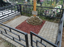 Сначала мы покрасили ограду, установили крест, положили брусчатку. Когда мы закончили укладку брусчатки пошел дождь, пришлось срочно накрыть ее пленкой. Это спасло ситуацию, если бы дождь залил брусчатку после укладки – это испортило бы работу, цемент забрызгал бы шероховатый камень, а избавиться от его следов практически невозможно.