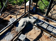 Ранее возведённый деревянный каркас залили бетоном. Выждав достаточное время для того, чтобы раствор окончательно схватился, мы принялись сваривать металлический периметр, внутрь которого и будет уложена брусчатка.