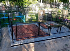 В данном заказе нам предстояло переоформить уже существующее место захоронения. Клиент пожелал облагородить могилу, выложив её территорию брусчаткой, заменив лавочку со столиком и обновив памятники. Обговорив все детали предстоящей работы, мы осмотрели участок. На нижеприведённых фотографиях отображено изначальное состояние места захоронения.