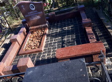 Облицевали бетон полированным гранитом, на территорию участка уложили брусчатку, предварительно приподняв памятник.