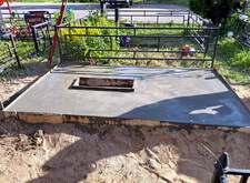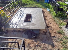 Заливаем бетон. Толщина получившегося основания составляет порядка пятнадцати сантиметров, что является очень хорошим основанием для любого памятника.