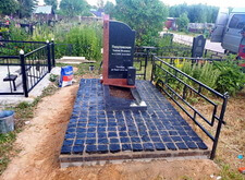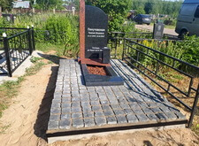 Даём брусчатке высохнуть. Так выглядит место захоронения на момент сдачи объекта, клиент остался очень доволен проделанной работой.