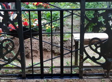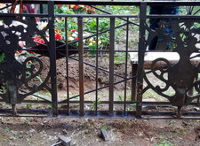 В данном заказе мы столкнулись со следующей проблемой: из металлического ограждения, опоясывавшего периметр участка, была украдена секция. Нижняя же часть ограждения практически полностью прогнила, а потому и остальные элементы узора грозили в скором времени банально выпасть.