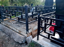 Когда от клиента было получено разрешение приступить к работам, мы вновь вернулись на кладбище. Могила к этому времени приобрела довольно-таки неприглядный вид: место захоронения полностью заросло травой, практически скрыв памятник. Это проблему заказчик предпочёл решить наземным покрытием.